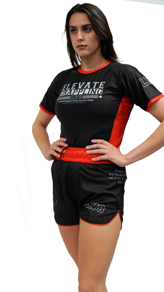 Women's Elevate V1. Fight Shorts. Red
